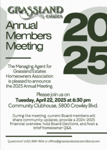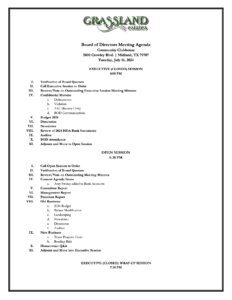 Minutes Pending… Grassland Estates Related postsBoard of Directors Monthly Meeting 07/16/24July 12, 2024November 2025 Board MeetingNovember 13, 2025Annual Members MeetingApril 13, 2025 Previous postBoard of Directors Monthly Meeting Minutes 11/14/23Next postBoard of Directors Monthly Meeting Minutes 02/20/24