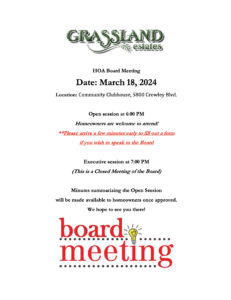 Evelyn Orellana Related postsBoard MeetingMay 18, 2025Meet Your Nominees For HOA’s Board of DirectorsApril 16, 2024HOA Board Meeting: March 18, 2024March 13, 2025 Previous postSeptember Newsletter